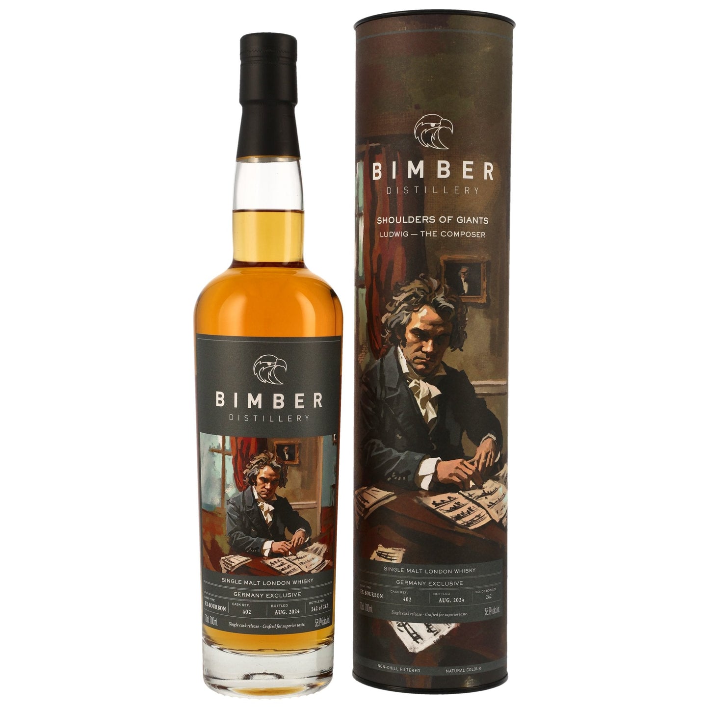Bimber Bourbon Cask #402 (Ludwig) – ein außergewöhnlicher Single Malt London Whisky aus der Germany Edition 2024: Shoulders of Giants. Diese exklusive Edition ehrt historische Persönlichkeiten, deren Leistungen bis heute inspirieren.