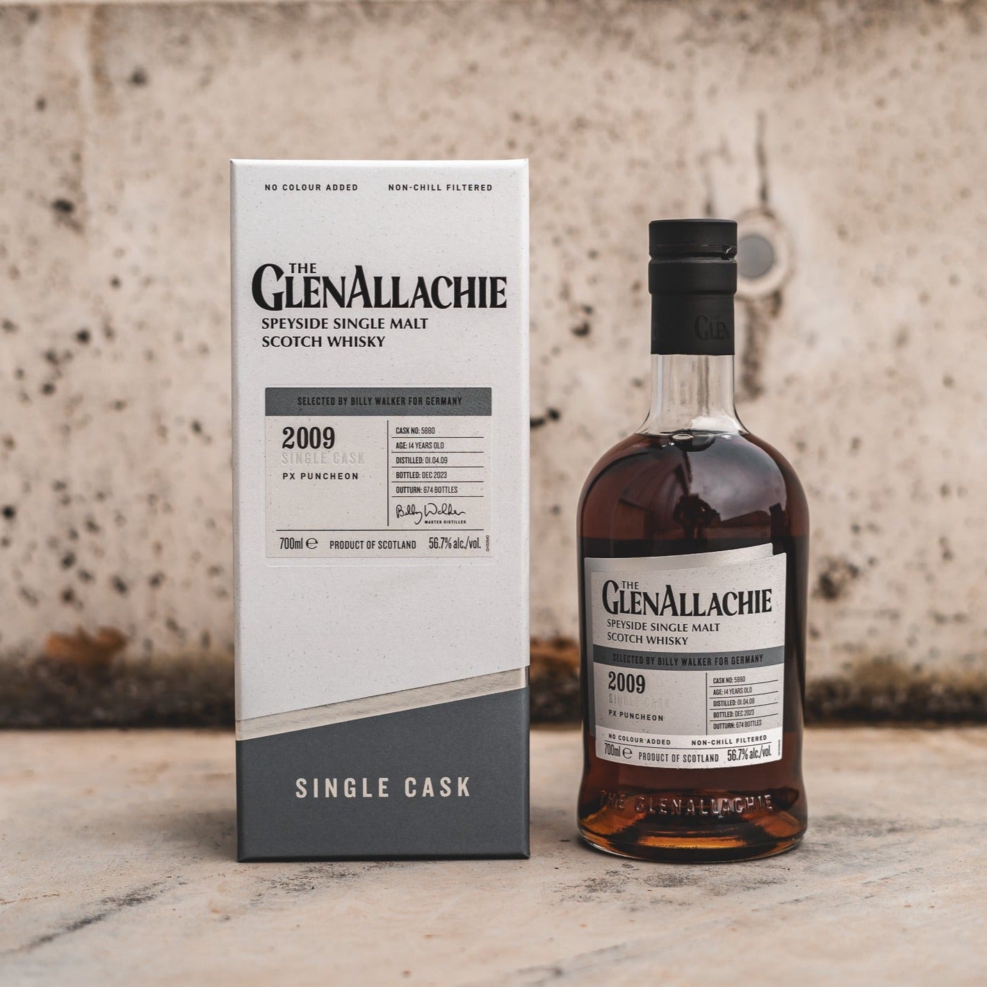 Der GlenAllachie 2009/2023 – PX Puncheon #5880 ist ein außergewöhnlicher Speyside Single Malt Scotch Whisky, ausgewählt von Billy Walker speziell für den deutschen Markt.