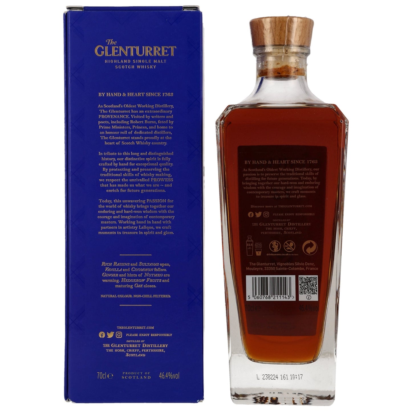 Dieser 12 Jahre alte Glenturret Whisky zeugt von der Sorgfalt und Hingabe, mit der in der Glenturret Distillery gearbeitet wird. Jede Flasche erzählt die Geschichte des handwerklichen Geschicks und der Aufmerksamkeit, die in den gesamten Produktionsprozess einfließen.