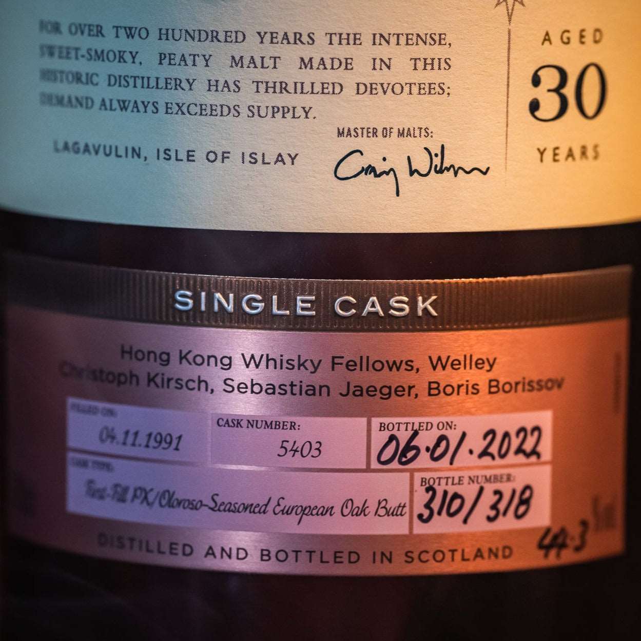 Hinter der Abfüllung stehen die Hong Kong Whisky Fellows, bekannt für ihren Brora 42 y.o., und die House Welley Whisky Bar aus Hong Kong, deren Gründer bereits einen Lagavulin aus dem Jahr 1995 abfüllte. Außerdem Boris Borissov und Sebastian Jäger, Gründungsmitglieder des Wu DRAM Clans, die mit ihrem European Lagavulin Fans 21 y.o. das erste CoD in Europa überhaupt herausgebracht haben und eine sehr enge Bindung zu Diageo pflegen. Und: Christoph Kirsch, wie der Lagavulin auch Jahrgang 1991, für den mit dieser Abfüllung ein großer Traum in Erfüllung geht.