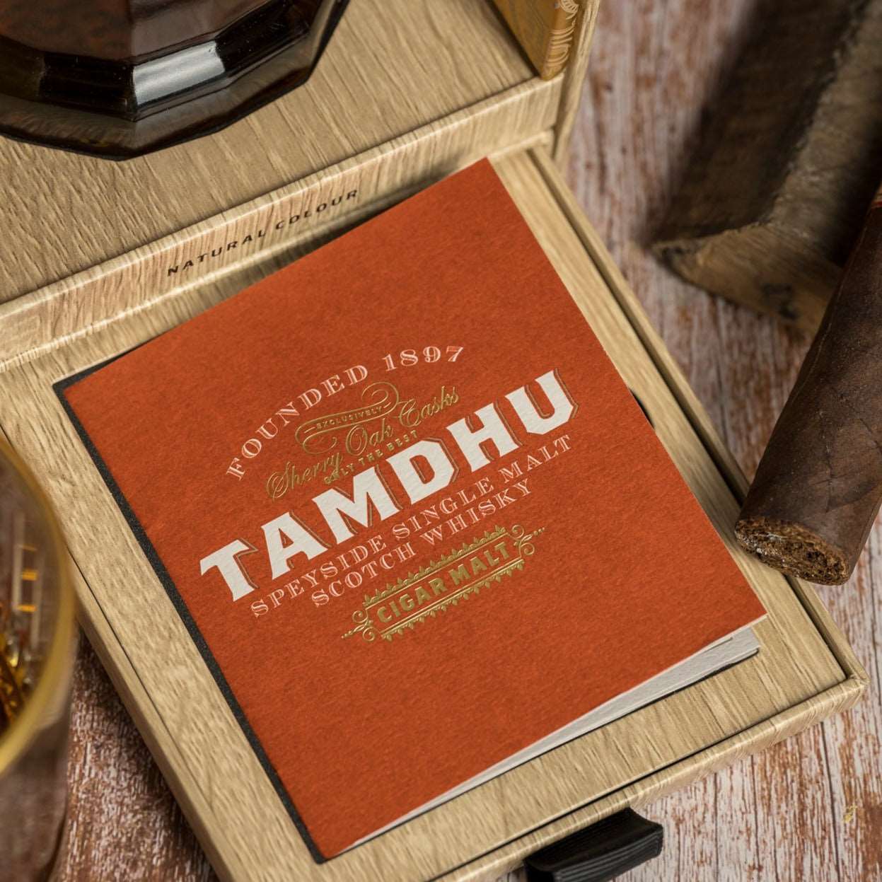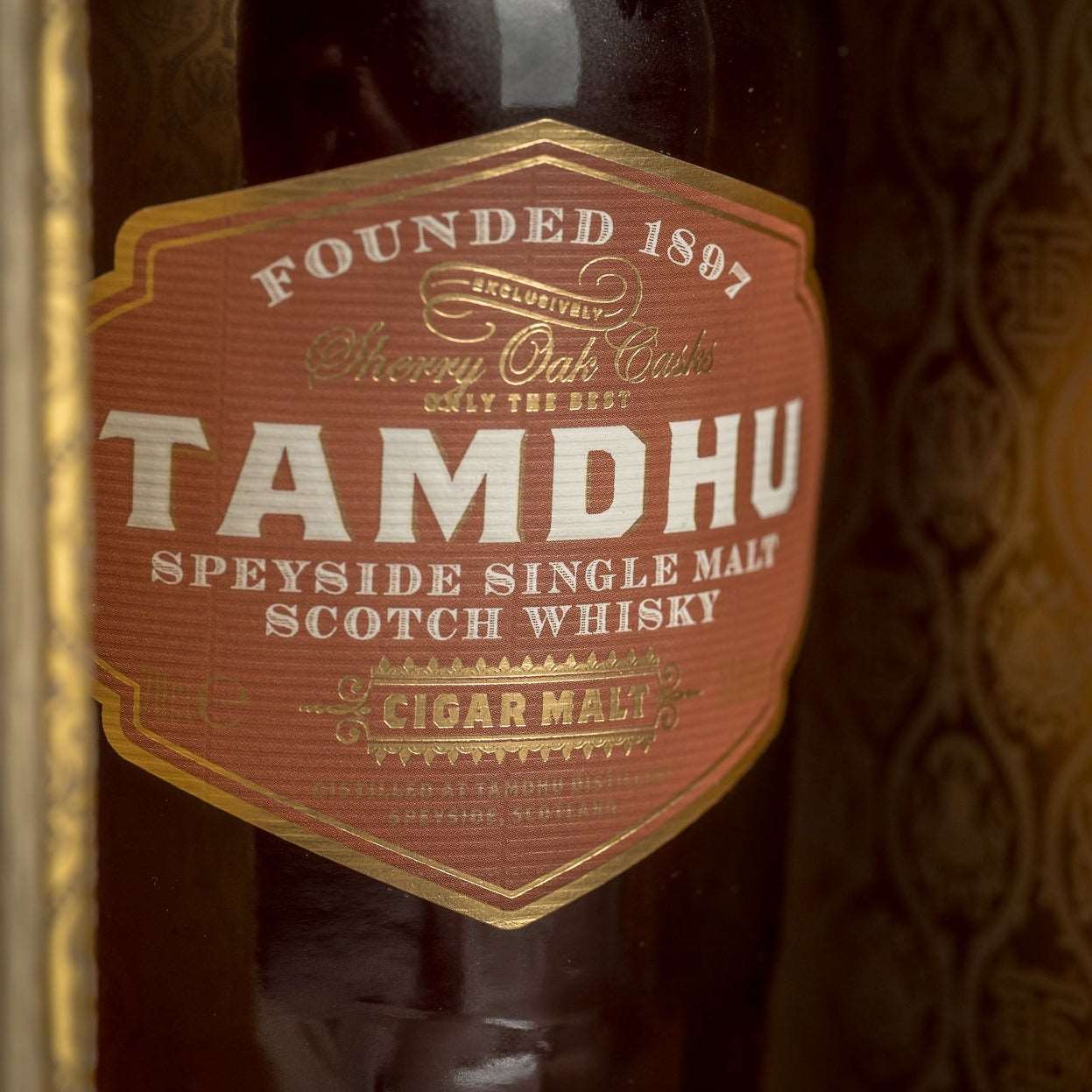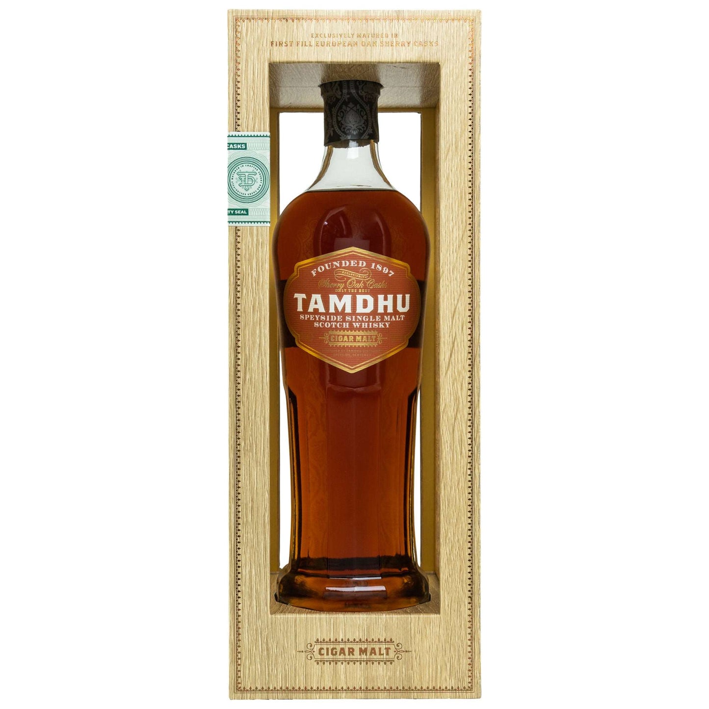 Für ihren ersten Cigar Malt verwendete Tamdhu ausschließlich eine handverlesene Auswahl an Single Malts aus First Fill European Oak Oloroso Sherry Casks, dessen kräftiger Charakter den vollen Geschmack einer Zigarre optimal unterstreicht.