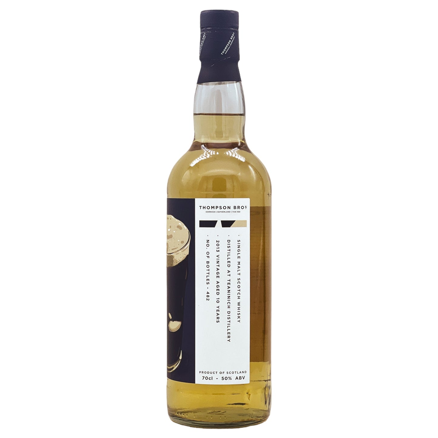 Aus der Teaninich Distillery, einer renommierten Brennerei mit einer langen Geschichte in den Highlands, stammt dieser Whisky, der das sorgfältige Handwerk seiner Hersteller zeigt. Nach seiner ersten Reifung wurde dieser Spirit in einem Stout-Fass nachgereift, was ihm einzigartige, vielschichtige Aromen verleiht. Destilliert im Jahr 2013 und ein Jahrzehnt später, im Jahr 2023, von den angesehenen Thompson Bros. abgefüllt – ein Symbol für Tradition und Leidenschaft in der Whisky-Welt –, beeindruckt er mit einem beachtlichen Alkoholgehalt von 50%.