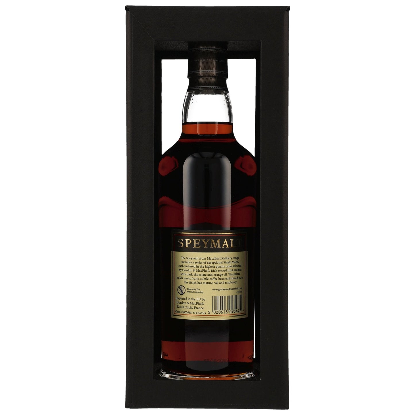 Der Speymalt aus der Macallan Distillery 2003/2023 ist ein Single Malt Scotch Whisky, abgefüllt von Gordon & MacPhail, einem renommierten unabhängigen Abfüller. Dieser Whisky wurde 2003 destilliert und nach 20 Jahren Reifung im Jahr 2023 in Fassstärke abgefüllt. Er reifte in einem Sherryfass mit der Nummer 13603610, was ihm seine komplexen und vielschichtigen Aromen verleiht.