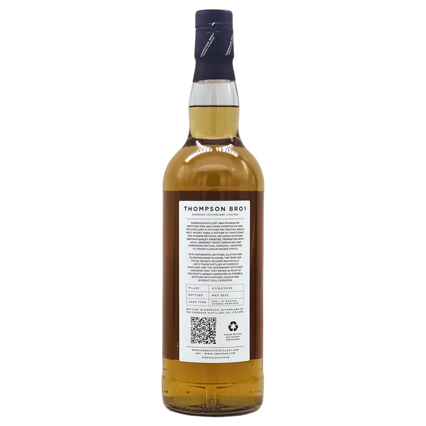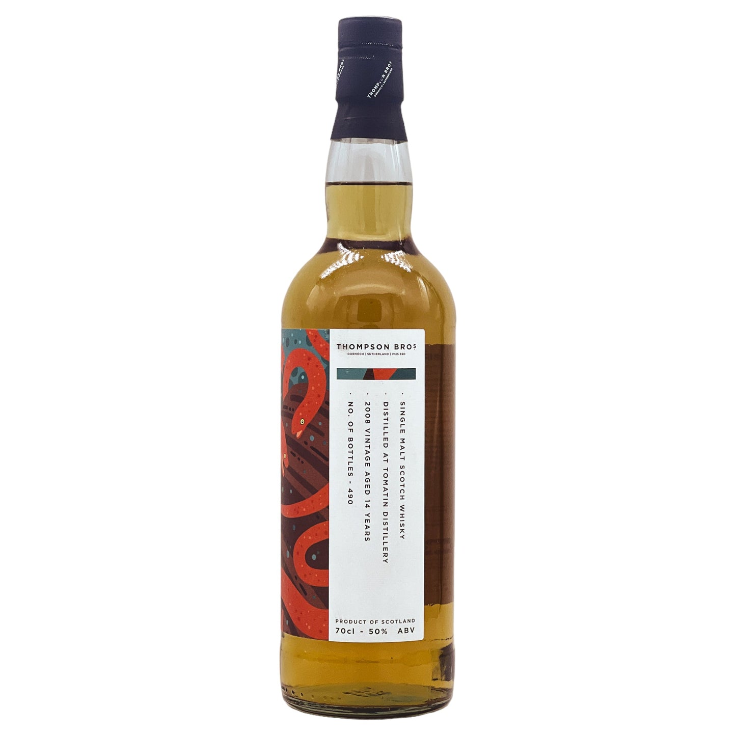 Stammend aus der Tomatin Distillery, einer verehrten Einrichtung im Herzen der schottischen Highlands, verkörpert dieser Whisky jahrhundertelange Destillationskunst. Er wurde zunächst 2008 destilliert und erhielt eine einzigartige Veredelung: 27 Monate in einem Cognac Barrique, das dem Whisky komplexe fruchtige Noten und eine tiefere Reichhaltigkeit verleiht. Abgefüllt im Jahr 2022 von den renommierten Thompson Bros., Kennern feiner Spirituosen und reicher Traditionen, besitzt er einen kräftigen Alkoholgehalt von 50% und ist auf eine Auflage von nur 490 Flaschen limitiert.